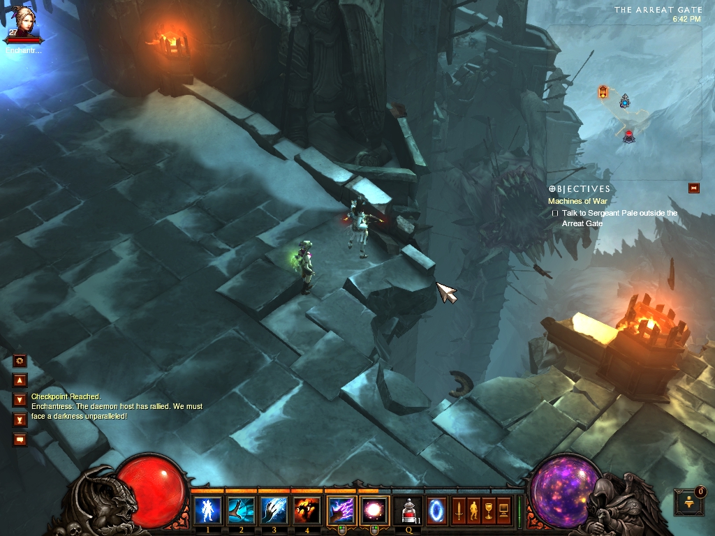 My wizard taking in the sights near Bastion's Keep in Diablo 3's third actThis system is perhaps the greatest triumph of Diablo III. Whereas build experimentation was nearly impossible in Diablo II, it is now highly encouraged. I found my build evolving to the needs of the situation more and more as the game progressed.