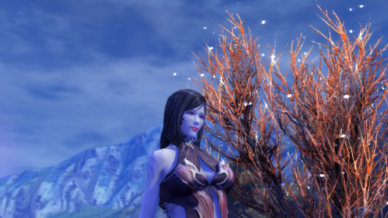 She turned out about as I wanted her. Unfortunately, the lighting in the Asmodian starting zone makes her skin look a little darker than it actually is. Also, the shoulder tattoos weren’t my idea. Couldn’t get rid of them. Still, a near perfect match to the image in my mind.