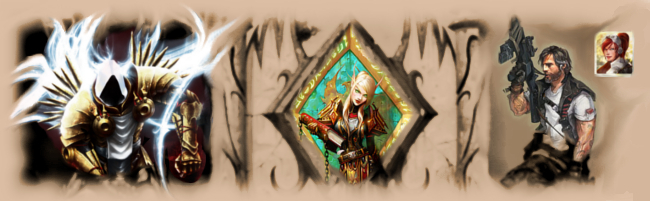 A sepia tone image featuring Blizzard's game franchises: Warcraft, Starcraft, and DiabloDiablo III: Reaper of Souls