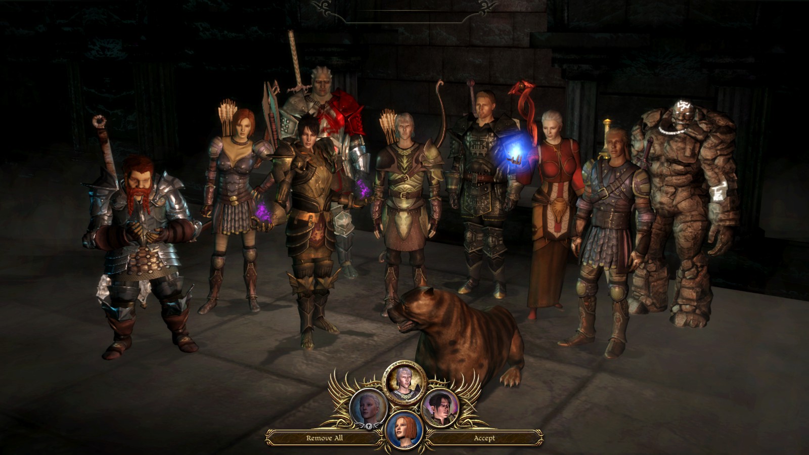 What I didn’t like about DA2 was not being able to customize the looks of your party members. In Origins you were able to equip everyone with anything they could wear. In DA2, your party members really only get weapons, I think boots, and jewelry.