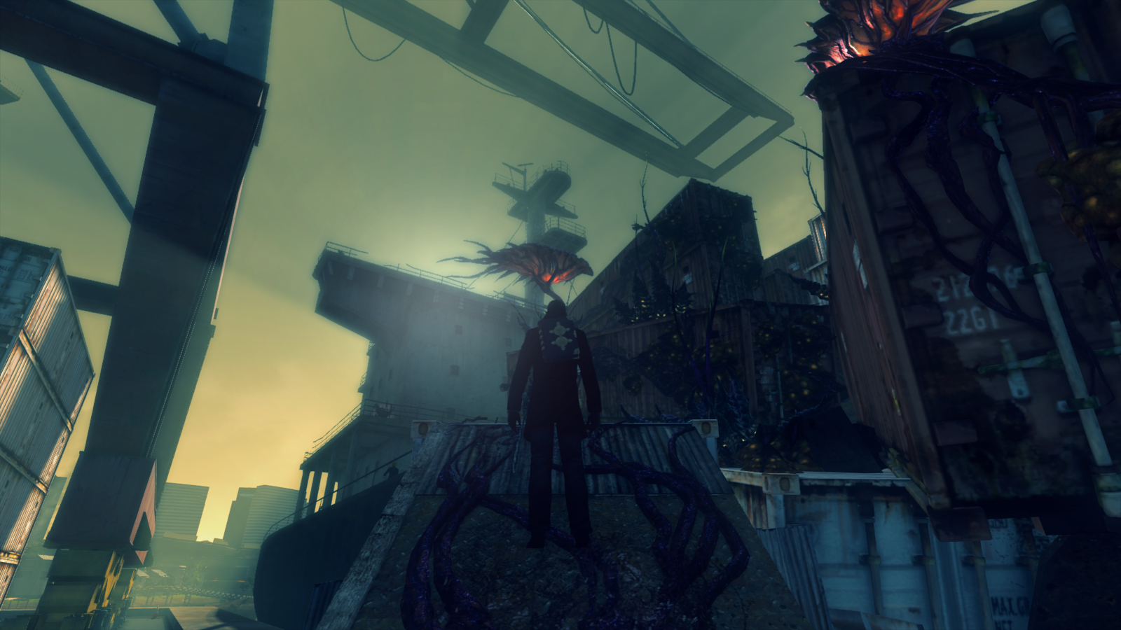 On the other hand, the other new areas — the Filth-ridden docks and an abandoned CDC camp — are easily the best areas in Tokyo to date. They’re incredibly detailed, and they have a beautifully haunting post-apocalyptic feel. It hammers home the unstoppable nature of the Filth to wander through a CDC camp full of raging zombies in hazmat suits. Meanwhile, the fungal Filth have turned the docks into a surreal nightmare landscape that contrasts wonderfully with the sterile nature of the rest of Tokyo.