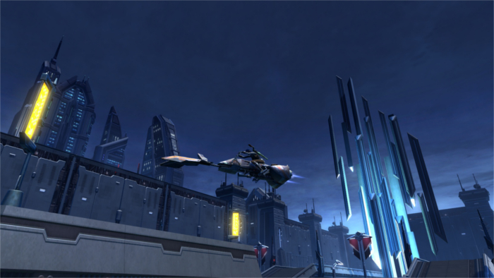 My Imperial agent riding a speeder over the city in Star Wars: The Old RepublicIt also seems like perhaps the best chance I’ll ever have to experience Star Wars as the smart and powerful story it should be but isn’t.