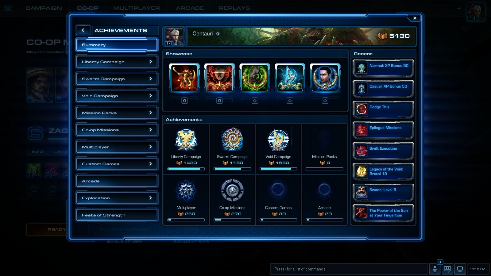 I also worked on bolstering my achievements for the multiplayer and co-op missions categories enough to unlock the tier one medals for each. Along the way, I learned that I find most of the co-op commanders fairly dull, but surprisingly I kind of like Zagara, despite my usual dislike of Zerg. Vorazun remains my favourite by far, however. Love playing as her.