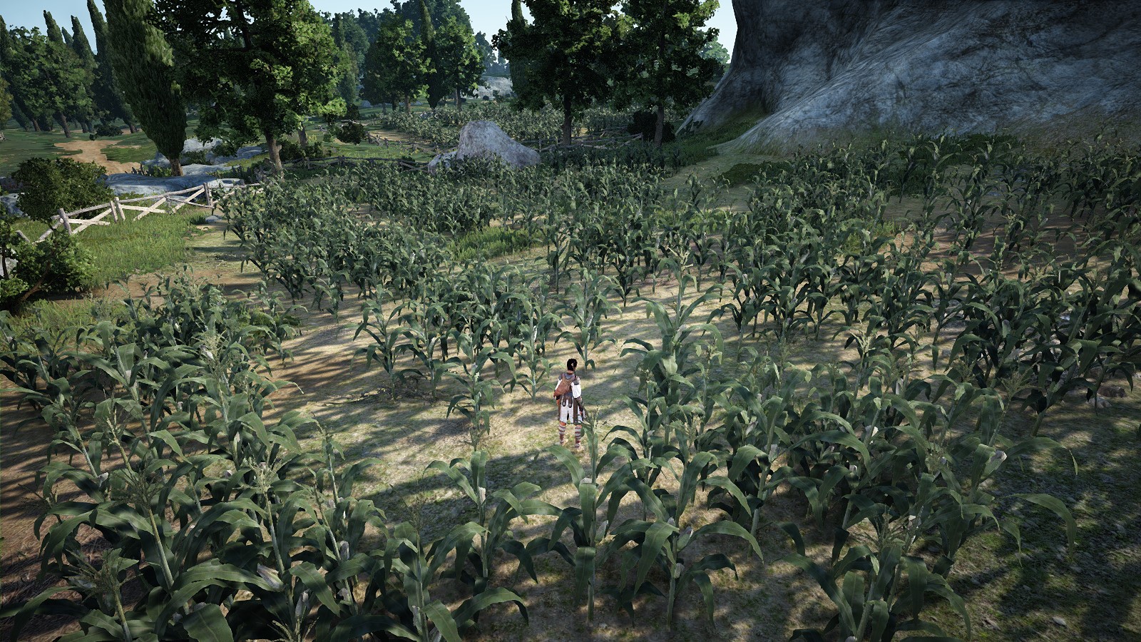 A corn field in Black DesertIt turns out most of Black Desert’s world is actually pretty empty. In my wanderings, I found lots of pretty sights, but little of actual interest. I encountered a fair few crafting nodes, but my plans to gather extensively were quickly scuppered by how limited energy points are. You run out of them almost immediately, at least early on.