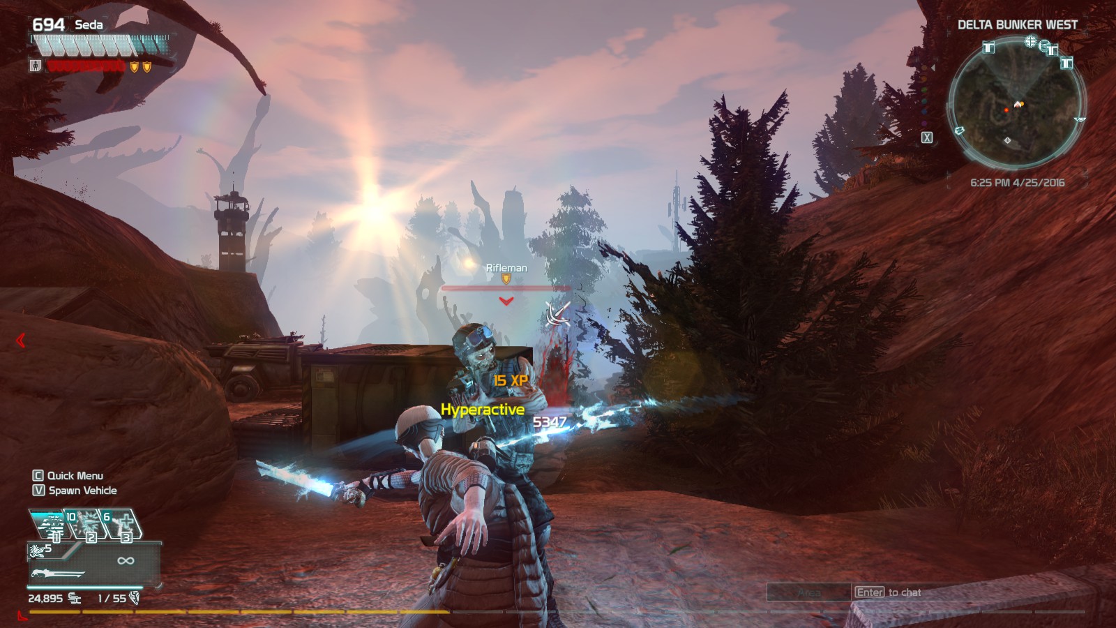 Wielding a charge blade in the MMO shooter DefianceOn the other hand, Defiance’s progression has always been one of the game’s greatest flaws. Leveling in Defiance is excessively grindy, convoluted, and unrewarding, managing to be both over-complicated and incredibly shallow all at once.
