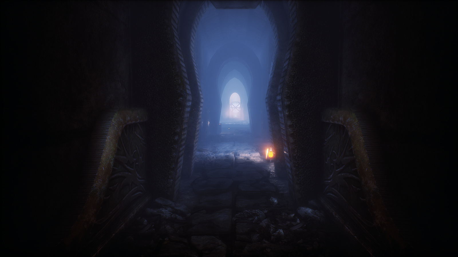 Antarctic ruins in the eldritch horror game Conarium.The bits I’ve played so far do a good job of keeping you constantly on edge through isolating environments and superbly spooky environmental sounds. A proper horror aficionado might not be impressed, but for a lightweight like me it’s nerve-wracking, especially while I’m still recovering from Call of Cthulhu.